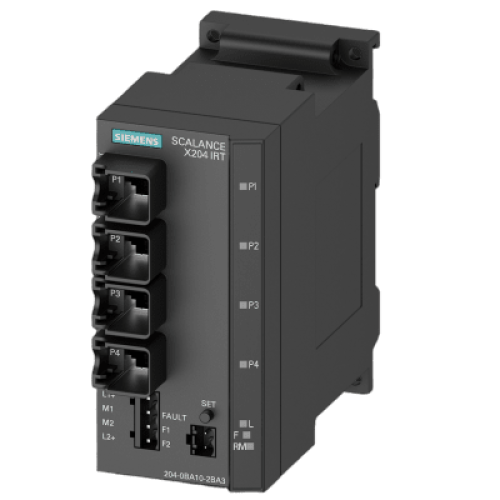 Switch Industrial Gestionado SCALANCE X204IRT / 4 Puertos 10/100 Mbps RJ45 / Redundancia IRT PROFINET / RM Integrado / Alimentación Redundante 24V DC / IP30 / -40°C a +70°C