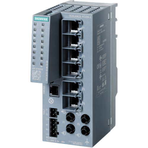 Switch Industrial SCALANCE XC206-2 / 6x 100 Mbit/s RJ45 / 2x 100 Mbit/s ST-BFOC / Redundancia de Alimentación / PROFINET IO / IEC 62443-4-2 / -40°C a +70°C