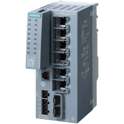 Switch Industrial SCALANCE XC206-2SFP / 6x RJ45 10/100 + 2x SFP 100/1000 / Layer 2 Gestionable / IEC 62443-4-2 Certificado / Redundancia MRP-HRP-RSTP / PROFINET IO Device / -40°C a +70°C