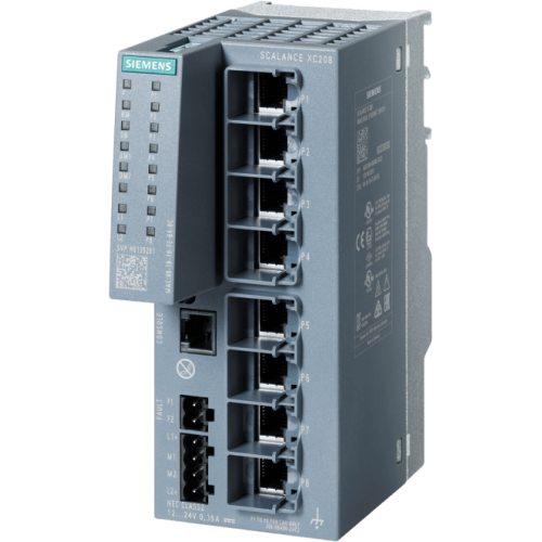 Switch Industrial SCALANCE XC208 / 8 Puertos 10/100 Mbit/s RJ45 / Redundancia PROFINET / Layer 2 Gestionable / IEC 62443-4-2 / -40°C a +70°C / DIN Rail