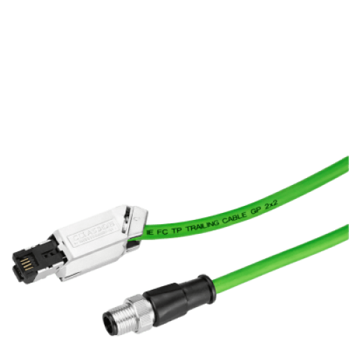 Cable de Conexión Industrial Ethernet / M12 D-coded / RJ45 / Cat5e / 15 m (49.2 ft) / PoE+ / PVC Verde / Drag Chain 3M Ciclos