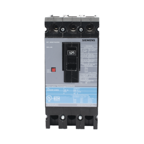 Interruptor Termomagnético ED6 600V 3X125A, Sin zapatas principales.