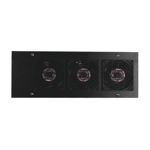 Kit de 3 ventiladores diseñado para enfriamiento en gabinetes Siemon VersaPOD, proporcionando un sistema eficiente de manejo térmico para equipos de infraestructura de red y telecomunicaciones.