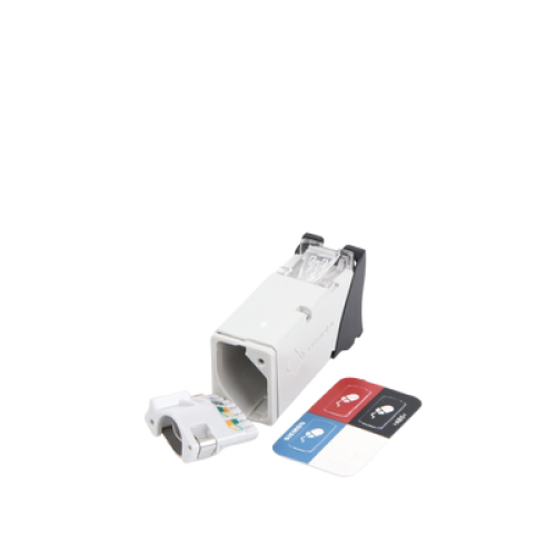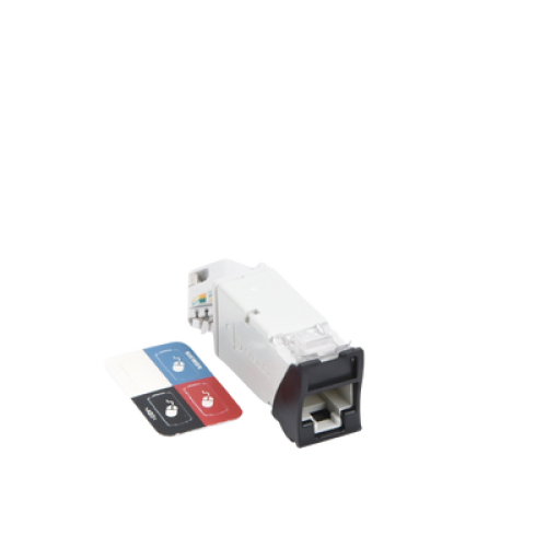 Jack Z-MAX Cat6A, Blindado, Montaje Híbrido en Placa de Pared (Plano y Angulado), Color Negro