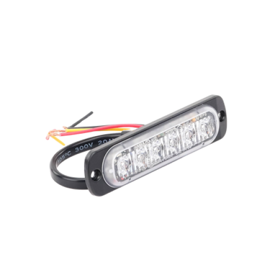 Luz Auxiliar de 6 LED, Roja, Bisel Negro, Lente Transparente