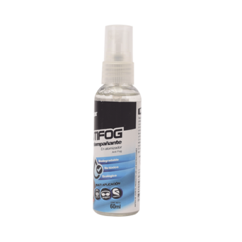 Antiempañante, ideal para eliminar problemas de empañamiento en googlees, mascaras, cascos, lentes, bote 60 ml