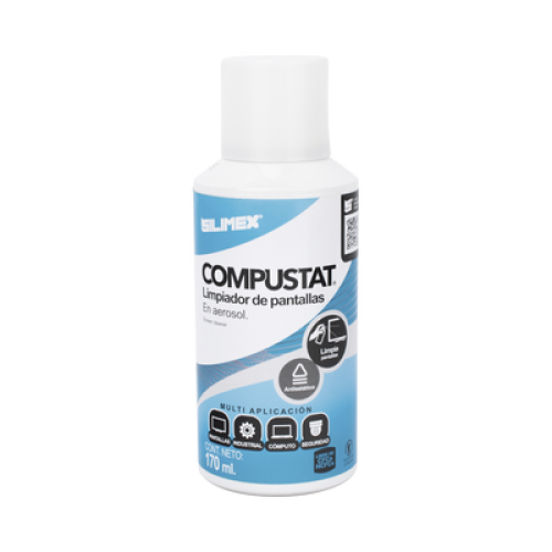 COMPUSTAT es un limpiador y protector antiestático para pantallas, repele el polvo sin ser corrosivo, diseñado para limpiar y proteger pantallas: LCD, plasma, lentes de cámaras de vídeo y todo tipo de discos compactos.