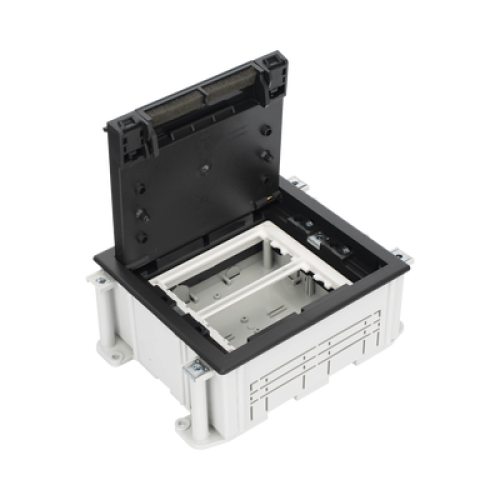 Caja de Suelo Simon Serie S / Para Voz, Datos o Contactos Eléctricos / Capacidad para 2 Módulos / Con Registro Integrado para Fijación en Concreto / Profundidad Ajustable de 70 a 100 mm (2.76 a 3.94 pulgadas) / Alta Resistencia Mecánica y Térmica