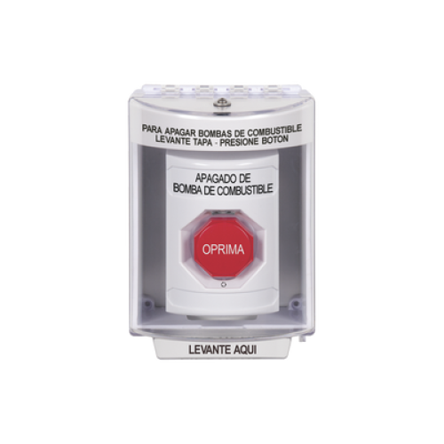 Botón de Apagado de Bomba de Combustible, Tapa Protectora de Policarbonato Súper Resistente con Espaciador, Acción Mantenida , Texto en Español