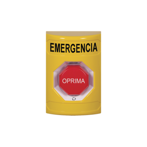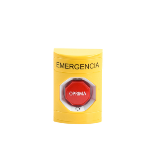 Botón de Emergencia en Español, Color Amarillo, Acción Mantenida, Girar para Restablecer y LED Multicolor