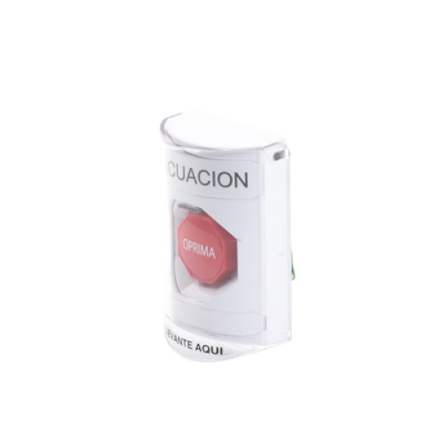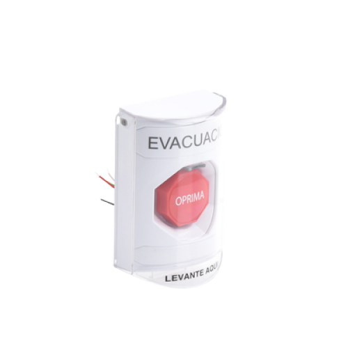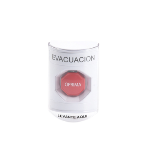 Botón de Evacuación, Texto en Español, Tapa Protectora de Policarbonato Súper Resistente, Restablecimiento con Llave