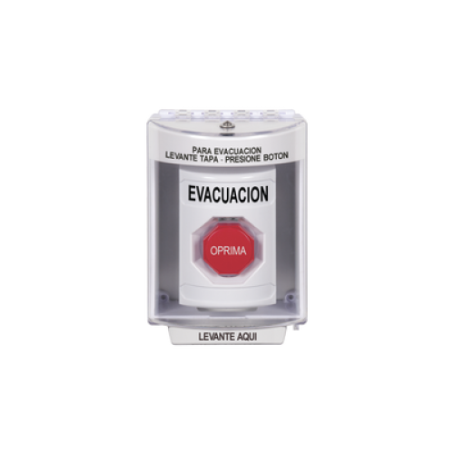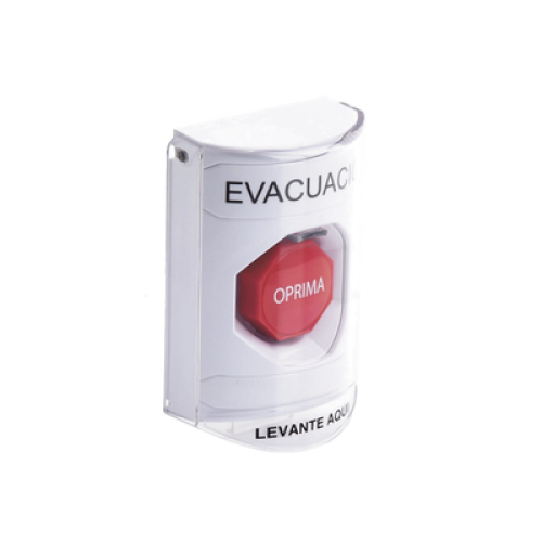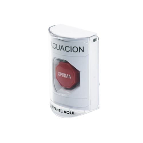Botón de Evacuación, Cubierta de Policarbonato Súper Resistente de Superficie con Espaciador, Restablecimiento con Llave, Con Bocina de Advertencia