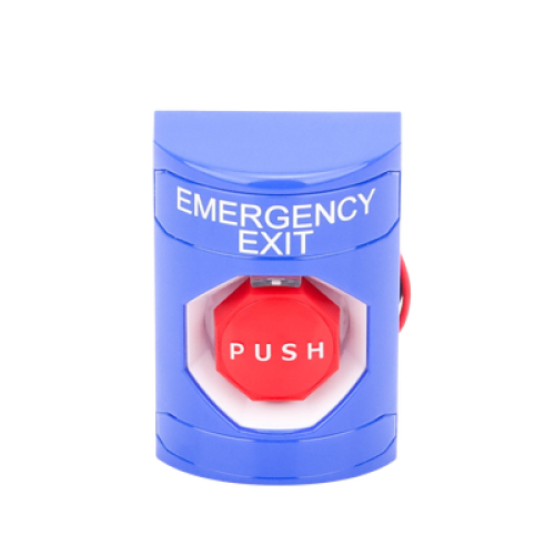Botón De Salida De Emergencia Con Bocina De Advertencia Integrada, Interior/Exterior, Texto En Ingles, Tapa Protectora De Policarbonato Súper Resistente, Neumático