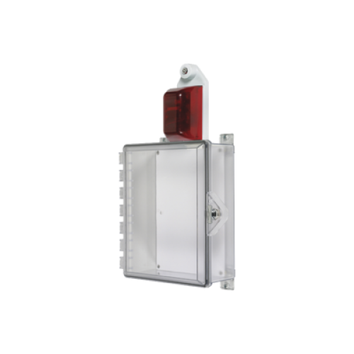 Gabinete Pequeño de Policarbonato Transparente Súper Resistente con Sirena/Estrobo y Cerradura Manual