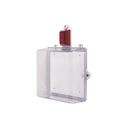 Gabinete Mediano de Policarbonato Transparente Súper Resistente con Sirena/Estrobo y Cerradura Manual