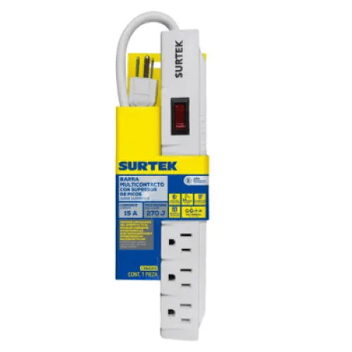 Multicontacto con Supresor de Picos 450 Joules, Voltaje de Entrada: 127 Vca NEMA 5-15P, Con 6 Salidas NEMA 5-15R.