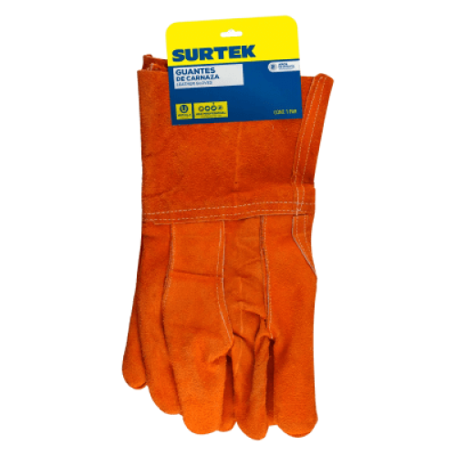 Guantes de Carnaza Largo/ Refuerzo en Palma / Resistente a Abrasión y Temperaturas Moderadas.