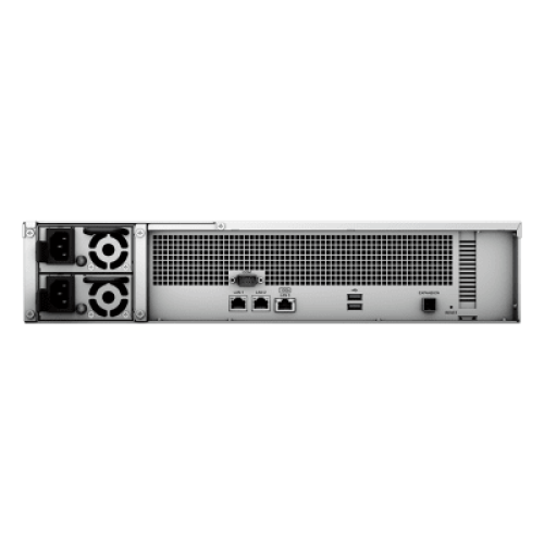 - Escala hasta 24 bahías de unidades y 432 TB de almacenamiento bruto con expansión (Unidad de Expansión Synology RX1223RP)