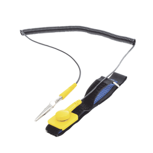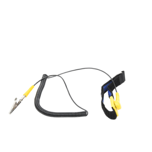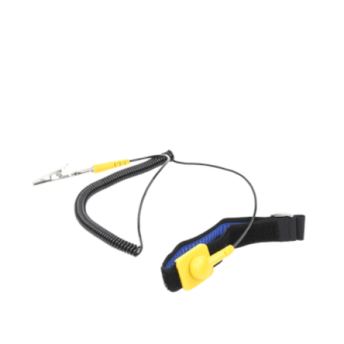 - Esta muñequera reutilizable es un dispositivo de seguridad utilizado para canalizar la electricidad estática a una superficie de conexión a tierra adecuada mientras se maneja un equipo informático sensible.