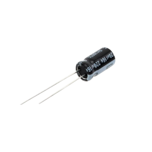 Capacitor Electrolítico en Aluminio, Radial de 220 µFd, 16 Vcc, 105 °C, 6.3 x 11 mm.