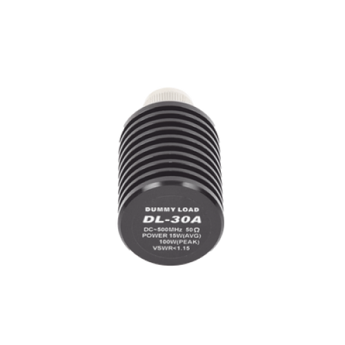 - Con capacidad de 15 watts de potencia continua o hasta 100 watts por períodos cortos, estas cargas de la serie DL30 están disponibles con conectores UHF Macho (PL-259) o Tipo N Macho