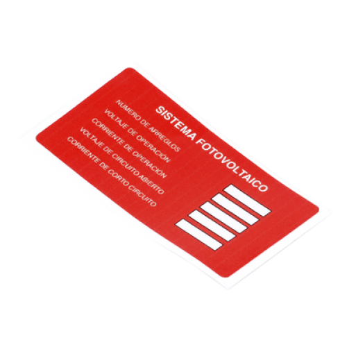 Etiqueta de Sistema fotovoltaico/ Paquete con 20