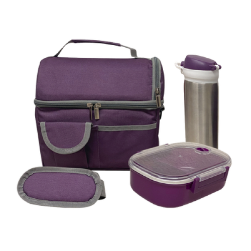 SET DE 2 LONCHERA DE 9 PULG. INCLUYE UN CILINDRO DE ACERO INOXIDABLE, UN RECIPIENTE DE PLÁSTICO PARA ALIMENTOS