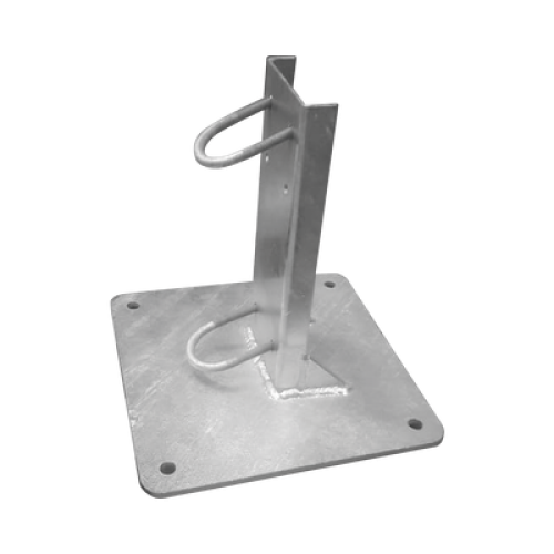 Base Recta Reforzada Galvanizada para Mástil de 1" a 2" de Diámetro.
