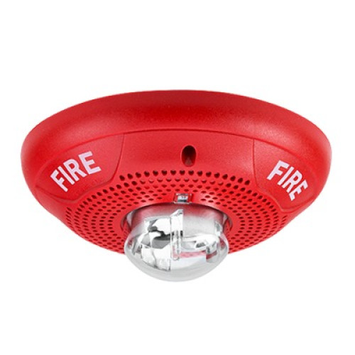 Bocina con Lámpara Estroboscópica para Instalación en Techo con Configuración Estroboscópica Seleccionable, Color Rojo