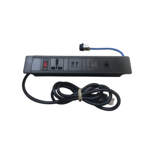 Hub para escritorio color negro, con 1 Puerto HDMI Hembra-Hembra, 1 Conector RJ45 Cat6, 2 Puertos USB 5V DC /2 A, y 1 Contacto eléctrico universal (11100-00001)