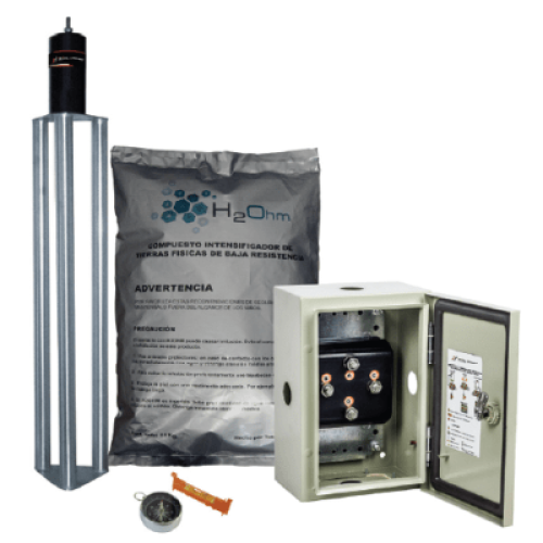 Kit de puesta a tierra de 70 A con Electrodo de Acero Inoxidable, Filtro, Acoplador y Compuesto H2Ohm.