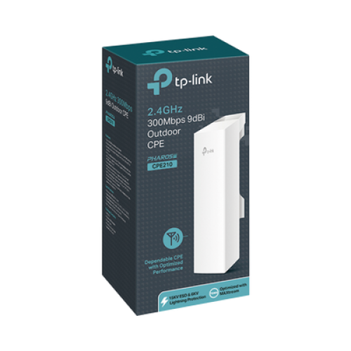 El CPE de Exterior de 2.4GHz 300Mbps 9dBi de TP-LINK CPE210 se dedica a soluciones rentables para aplicaciones en exteriores de redes inalámbricas y Wi-Fi. Con su aplicación de administración centralizada es ideal para aplicaciones exteriores de cobertura Wi-Fi. Rendimiento profesional, junto con un diseño fácil de usar, el CPE hace una opción ideal tanto para usuarios empresariales y domésticos.