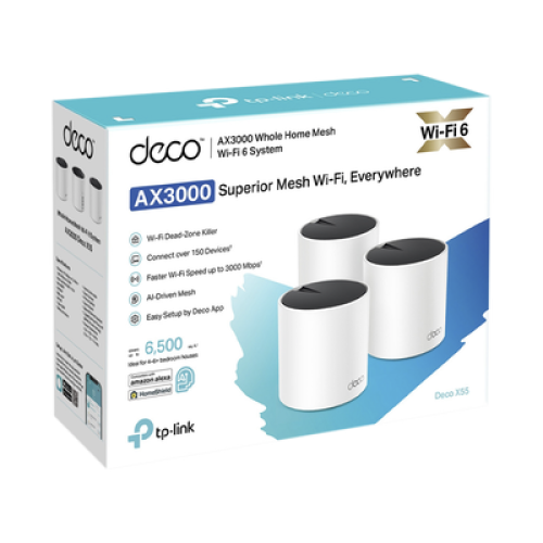 Kit 3 Routers Inalámbricos MESH Interior para Hogar / Doble Banda Wi-Fi 6 AX3000 Mbps / 3 Puerto Gigabit WAN/LAN / 2 Antenas Internas / Administración Mediante la App Deco (iOS, Android) / Protección HomeShield