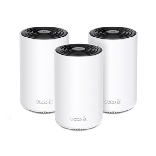 Kit 3 Routers Inalámbricos MESH Interior para Hogar / Doble Banda Wi-Fi 6E AX5400 Mbps / 3 Puerto Gigabit WAN/LAN / 4 Antenas Internas / Administración Mediante la App Deco (iOS, Android) / Protección HomeShield