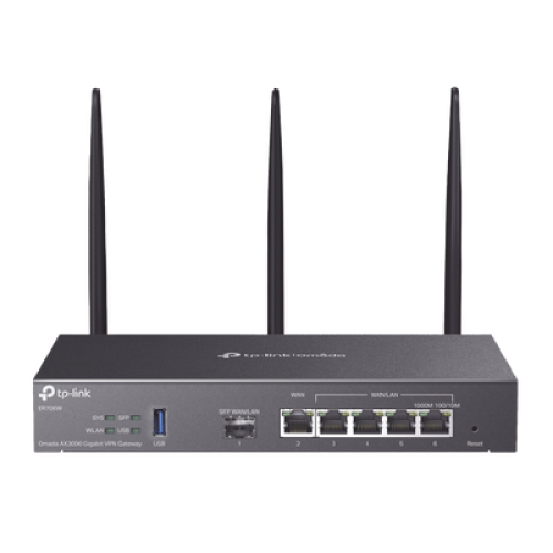 Router Omada VPN / SDN Multi-WAN Gigabit / 1 Puerto WAN SFP Gigabit / 1 Puerto WAN RJ45 Gigabit / 2 Puertos LAN RJ45 Gigabit / 2 Puertos Configurables LAN/WAN / 150,000 Sesiones Concurrentes / Administración Centralizada Omada o Stand-Alone
