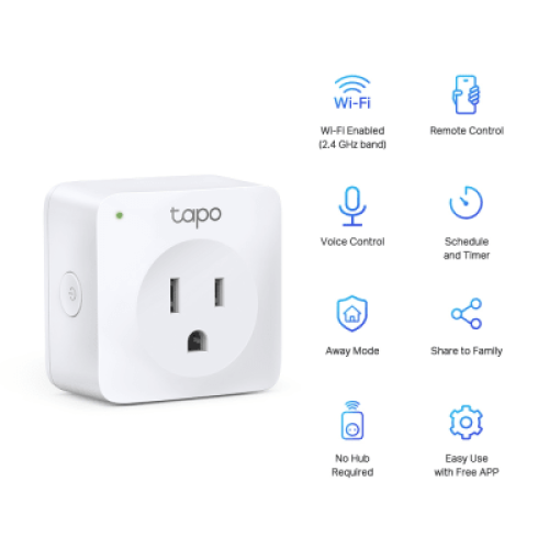 Mini tomacorriente inteligente Wi-Fi, 100 - 120V~, 50/60Hz, 15.0A, compatible con Amazon Alexa y Google Assistant, color blanco.