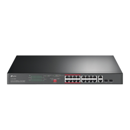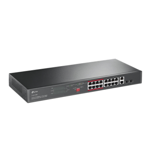 Switch PoE+ No Administrable de 16 puertos 10/100 Mbps / 2 puertos 10/100/1000 Mbps en Combo con 2 Puertos SFP / Presuuesto PoE 250 W / Extensor PoE de hasta 250 metros