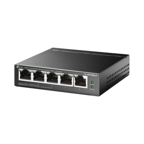 Switch PoE No Administrable de Escritorio / 5 puertos 10/100 Mbps / 4 puertos PoE af / Presupuesto 41 W / Modo extensor PoE hasta 250 metros / Calidad video prioritaria