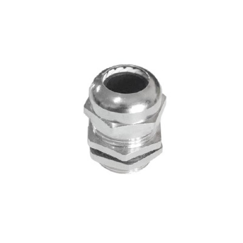 - Conector metálico tipo glándula para cables de 10-14 mm
