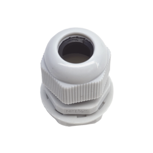Conector Plástico Blanco Tipo Glándula para Rosca NPT 1/2"