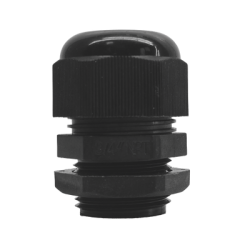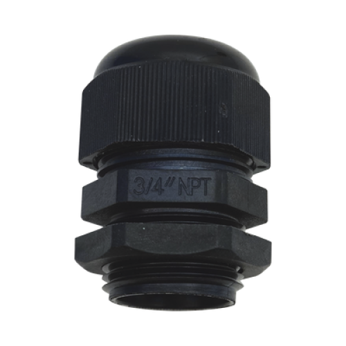 Conector Plástico Negro Tipo Glándula para Rosca NPT 3/4"