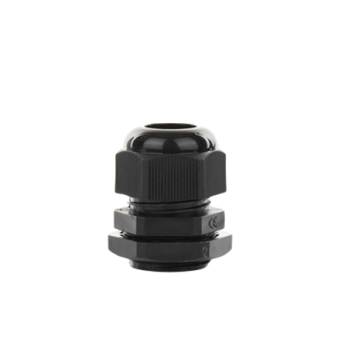 - Conector plástico negro tipo glándula