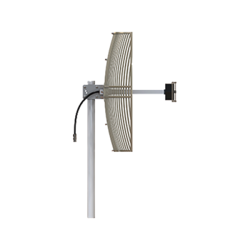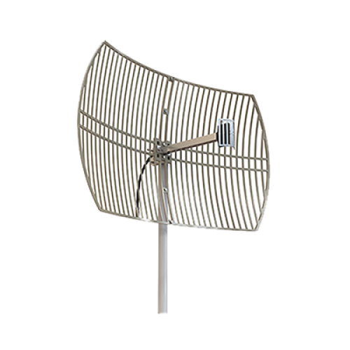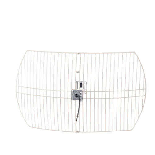 Antena Rejilla direccional, Ganancia 24 dBi, Dimensiones (90 x 60 x 38 cm), rango de frecuencia (2300-2500 MHz).