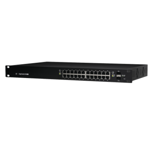 Switch EdgeMAX Administrable de 24 Puertos Gigabit con PoE+/PoE Pasivo 24V + 2 Puertos SFP, 500 W