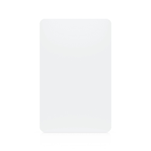 Tarjeta de acceso con formato estándar ISO 7810 ID-1, tecnología NFC de 13.56 MHz y protocolo de seguridad propietario UniFi Access, ideal para sistemas de control de acceso UniFi.