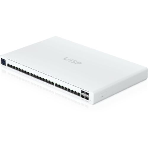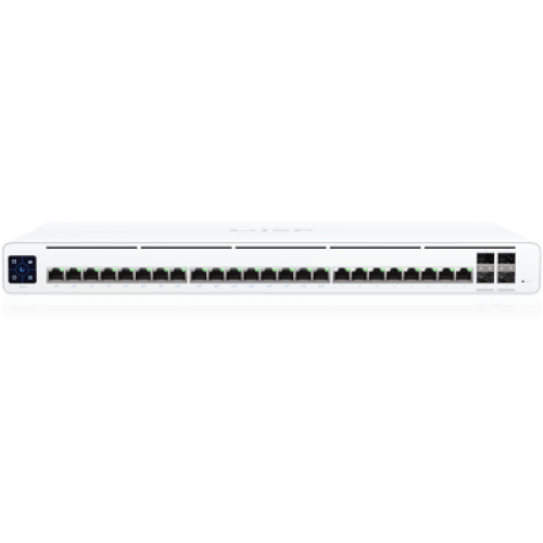 UISP Switch Pro – Switch PoE de 220 W (27 V) con 24 Puertos GbE, 16 Puertos PoE Pasivo 27 V y 4 Puertos SFP+ 10G