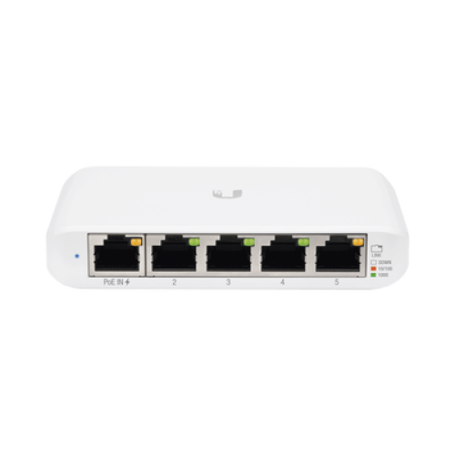 Construya y expanda su red. El switch modelo USW-Flex-Mini, es un switch administrable Gigabit inteligente el cual ofrece 5 puertos Ethernet RJ45, proporcionando enlaces de 1 Gigabit a sus dispositivos, adicional puede encender el USW-Flex-Mini con el adaptador de corriente USB Tipo-C o con PoE 802.3af/at en el puerto 1.
