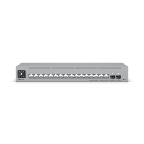 UniFi Switch Pro Max 16 con funciones Capa 3, 16 puertos EtherLight RGB / (4) puertos 2.5 GbE y (12) puertos GbE /(2) puertos SFP+ 10G /con pantalla táctil informativa