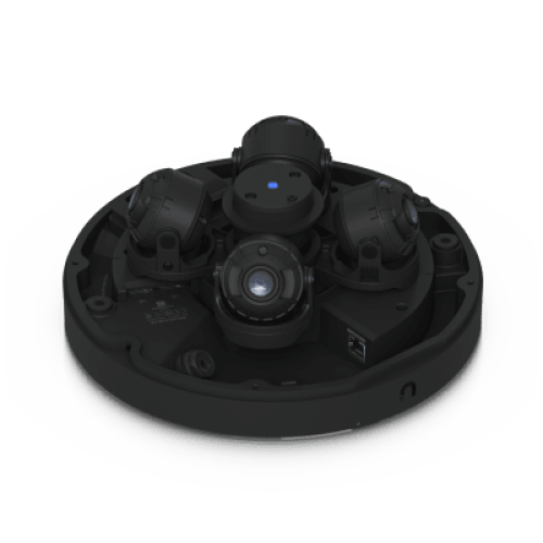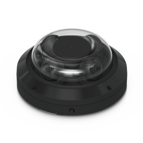 Cámara multisensor para exterior con resolución total de 32 MP, cobertura amplia mediante 4 sensores de 8 MP, zoom óptico 2.33x, audio inteligente, detecciones con IA, reconocimiento facial y reconocimiento de matrículas, alimentada por PoE++.