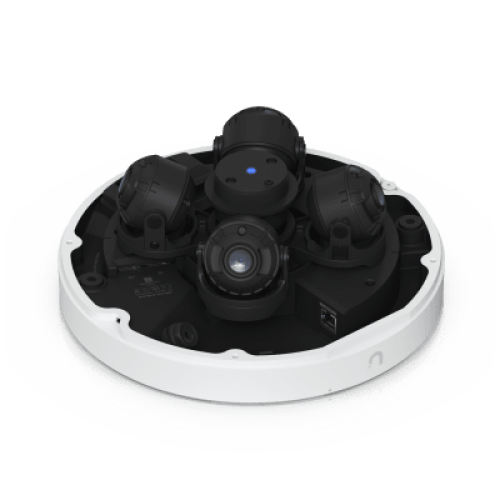 Cámara multisensor para exterior con resolución total de 32 MP, cobertura amplia mediante 4 sensores de 8 MP, zoom óptico 2.33x, audio inteligente, detecciones con IA, reconocimiento facial y reconocimiento de matrículas, alimentada por PoE++.